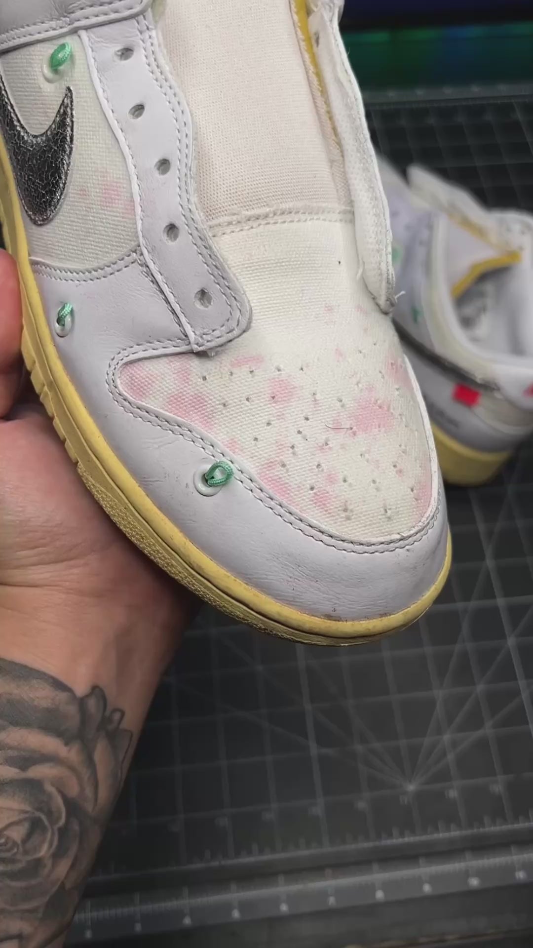 - Clean the Area: Begin by thoroughly cleaning the area you want to unyellow using NuAntidote. Once clean, wipe it dry (does not have to be completely dry when working on the uppers).